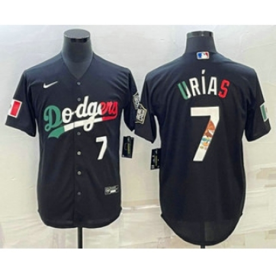 >Men's Los Angeles Dodgers #7 Julio Urias Number Black Mexico 2020 World Series Cool Base Nike Jerseys