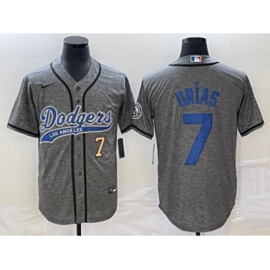 Men's Los Angeles Dodgers #7 Julio Urias Number Grey Gridiron Cool Base Stitched Baseball Jersey
