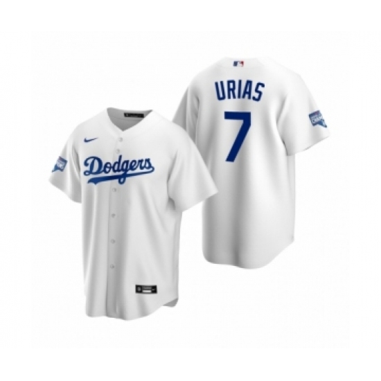 Men's Los Angeles Dodgers #7 Julio Urias White 2020 World Series Champions Replica Jersey
