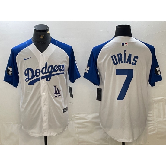 Men's Los Angeles Dodgers #7 Julio Urias White Blue Fashion Stitched Cool Base Limited Jerseys