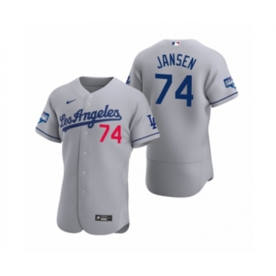 Men's Los Angeles Dodgers #74 Kenley Jansen Gray 2020 World Series Champions Road Authentic Jersey