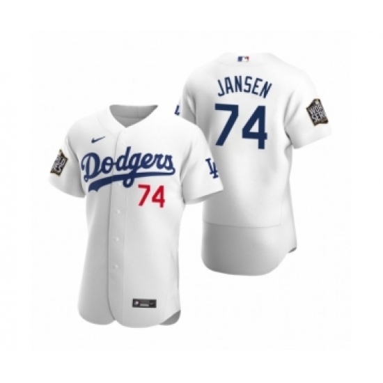 >Men's Los Angeles Dodgers #74 Kenley Jansen Nike White 2020 World Series Authentic Jersey