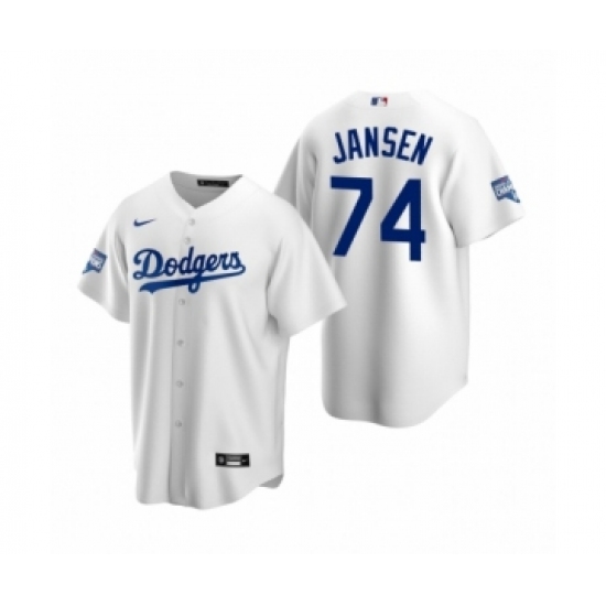 Men's Los Angeles Dodgers #74 Kenley Jansen White 2020 World Series Champions Replica Jersey