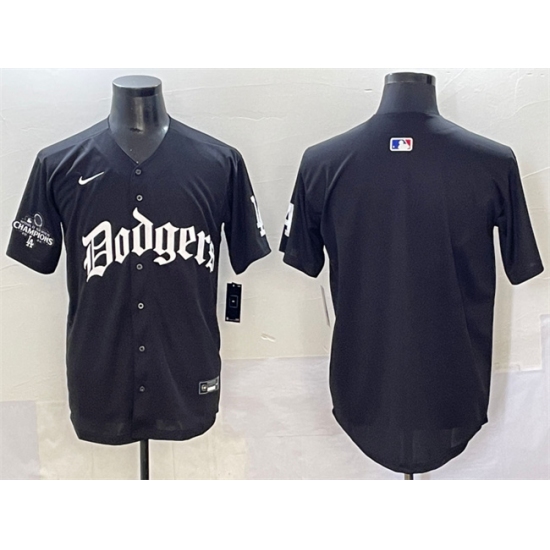 Men's Los Angeles Dodgers Blank Black 2025 LA Gothic Style With 2024 World Series Champions Vapor Premier Limited Stitched Baseball Jersey