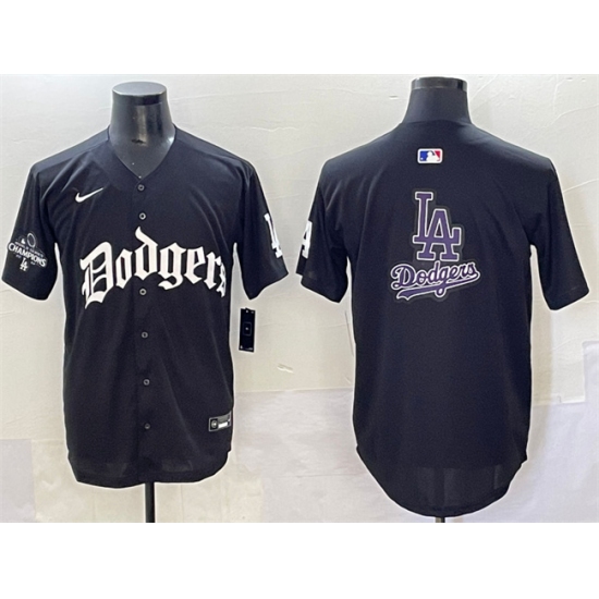 Men's Los Angeles Dodgers Team Big Logo Black 2025 LA Gothic Style With 2024 World Series Champions Vapor Premier Limited Stitched Baseball Jersey