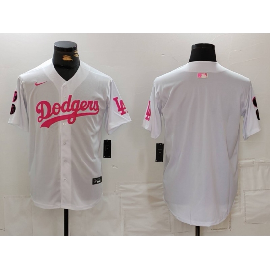 Men's Los Angeles Dodgers Team Big Logo White Pink Vin & Kobe Stitched Baseball Jersey