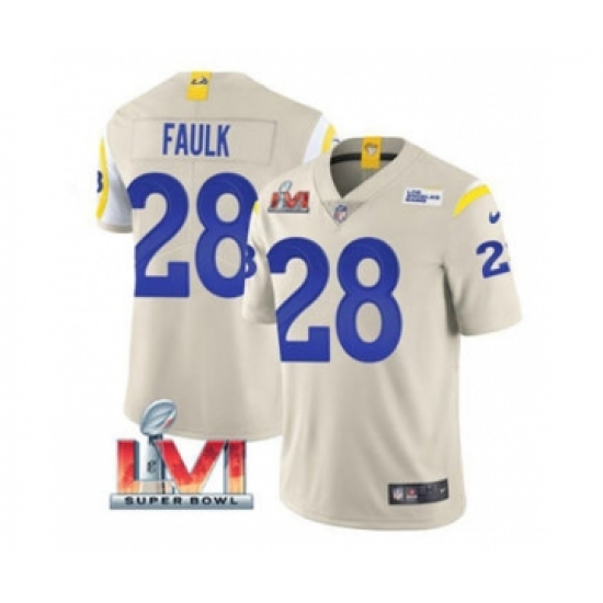 Men's Los Angeles Rams #28 Marshall Faulk Bone 2022 Super Bowl LVI Vapor Limited Stitched Jersey