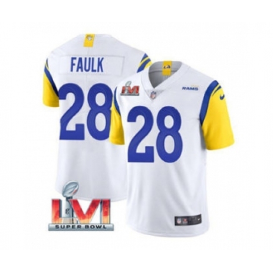Men's Los Angeles Rams #28 Marshall Faulk White 2022 Super Bowl LVI Vapor Limited Stitched Jersey