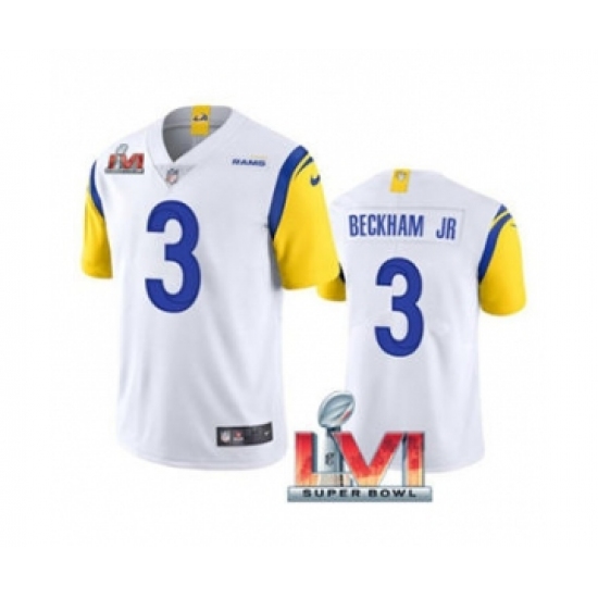 Men's Los Angeles Rams #3 Odell Beckham Jr. White 2022 Super Bowl LVI Vapor Limited Stitched Jersey