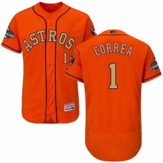 >Men's Majestic Houston Astros #1 Carlos Correa Orange Alternate 2018 Gold Program Flex Base Authentic Collection MLB Jersey