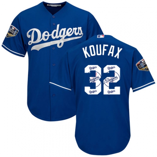 Men's Majestic Los Angeles Dodgers #32 Sandy Koufax Authentic Royal Blue Team Logo Fashion Cool Base 2018 World Series MLB Jersey