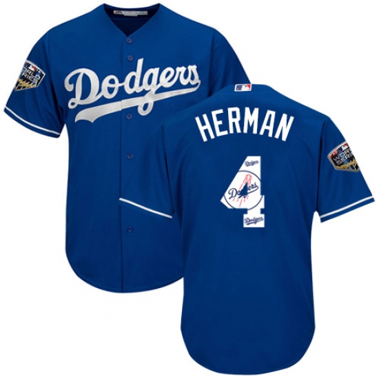 >Men's Majestic Los Angeles Dodgers #4 Babe Herman Authentic Royal Blue Team Logo Fashion Cool Base 2018 World Series MLB Jersey