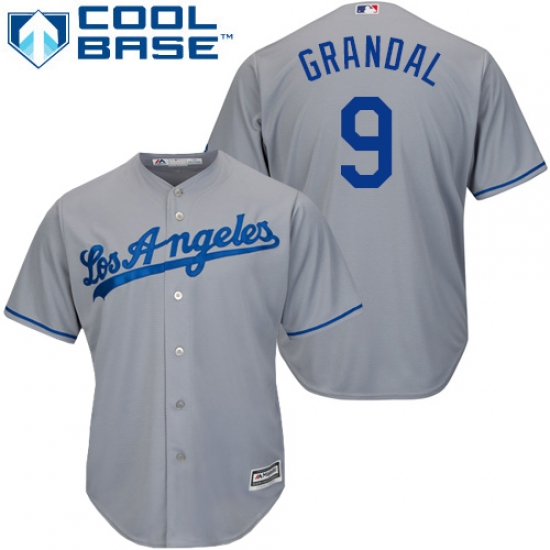 Home>MLB>Los Angeles Dodgers>Yasmani Grandal>Men's Majestic Los Angeles Dodgers #9 Yasmani Grandal Replica Grey Road Cool Base MLB Jersey
