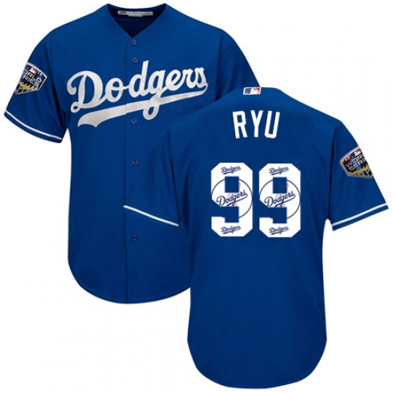 Men's Majestic Los Angeles Dodgers #99 Hyun-Jin Ryu Authentic Royal Blue Team Logo Fashion Cool Base 2018 World Series MLB Jersey