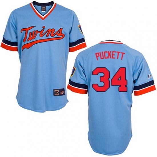 Men's Majestic Minnesota Twins #34 Kirby Puckett Replica Light Blue Cooperstown Throwback MLB Jersey