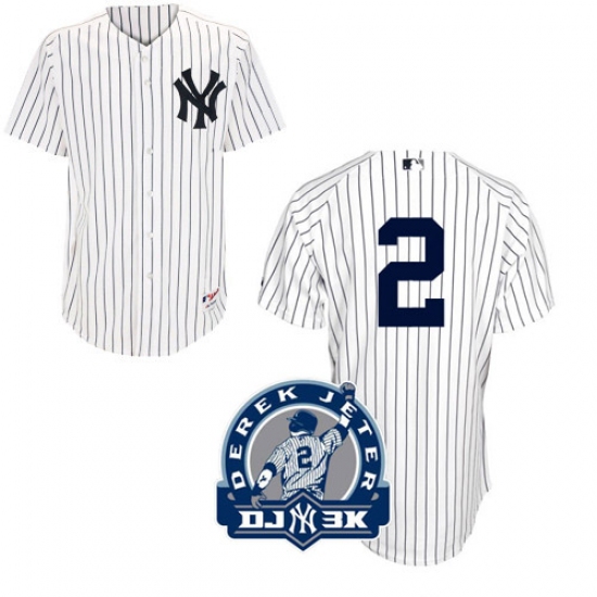 Men's Majestic New York Yankees #2 Derek Jeter Replica White DJ-3K Patch MLB Jersey