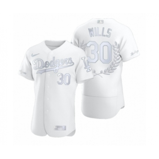 >Men's Maury Wills #30 Los Angeles Dodgers White Awards Collection NL MVP Jersey