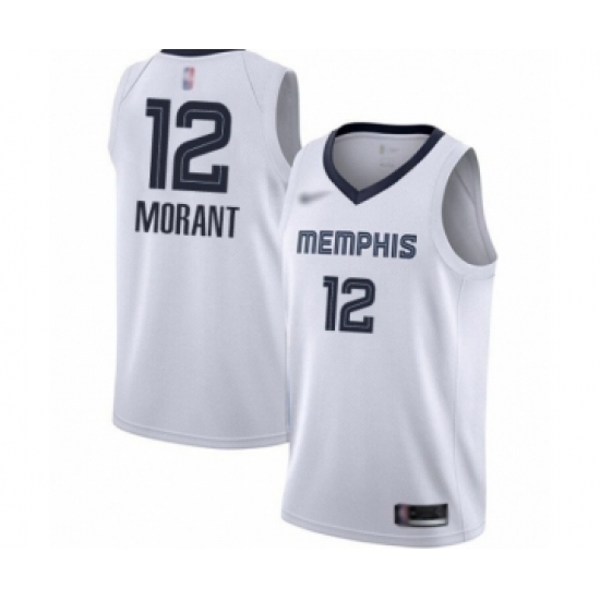 >Men's Memphis Grizzlies #12 Ja Morant Authentic White Finished Basketball Jersey - Association Edition
