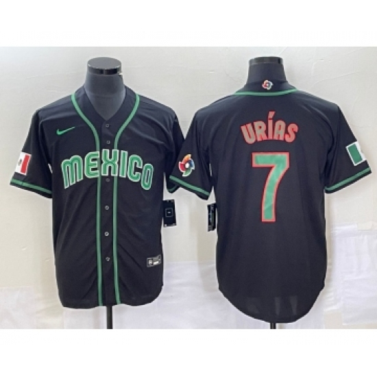 Men's Mexico Baseball #7 Julio Urias 2023 Black World Classic Stitched Jersey