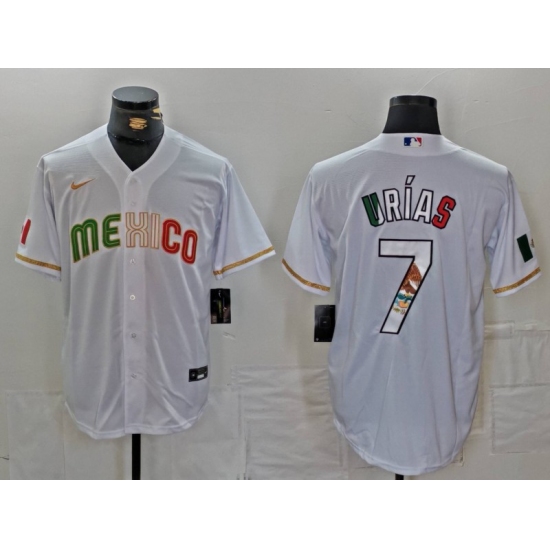 >Men's Mexico Baseball #7 Julio Urias 2023 White World Classic Stitched Jerseys
