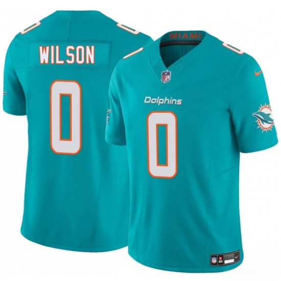 >Men's Miami Dolphins #0 Zach Wilson Aqua 2025 Draft F.U.S.E. Vapor Limited Football Stitched Jersey