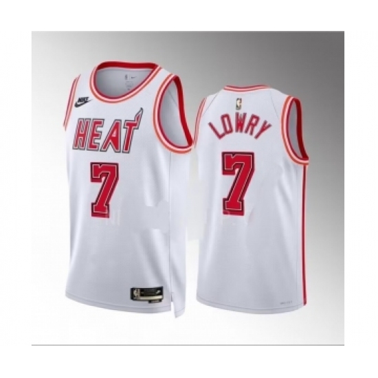 >Men's Miami Heat #7 Kyle Lowry White Classic Edition Stitched Basketball Jersey