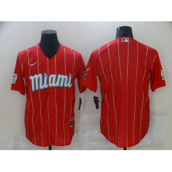 Men's Miami Marlins Blank Nike Red 2021 City Connect Replica Player Jersey