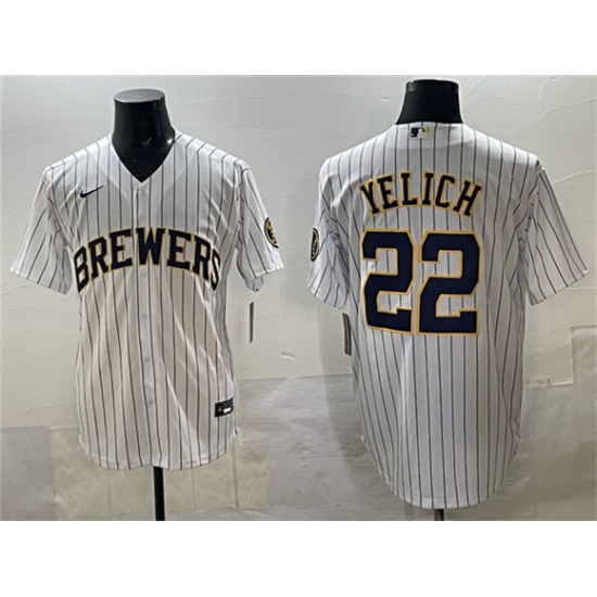 Men's Milwaukee Brewers #22 Christian Yelich White Pinstripe 2025 With Stitched Jersey