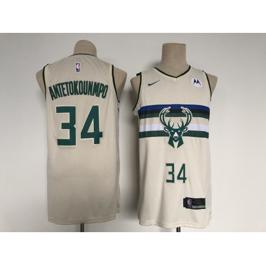 Men's Milwaukee Bucks #34 Giannis Antetokounmpo Swingman Cream City Player Jersey