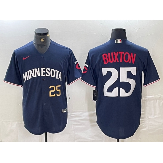 Men's Minnesota Twins #25 Byron Buxton Number 2023 Navy Blue Cool Base Stitched Jerseys