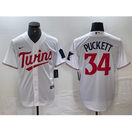 Men's Minnesota Twins #34 Kirby Puckett White Red Stitched MLB Cool Base Nike Jersey