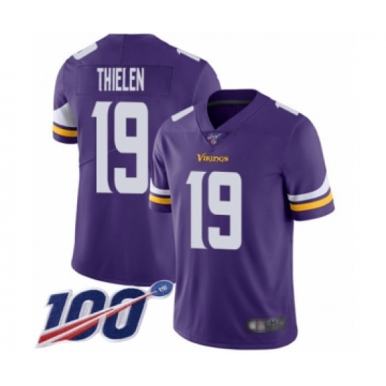 Men's Minnesota Vikings #19 Adam Thielen Purple Team Color Vapor Untouchable Limited Player 100th Season Football Jersey