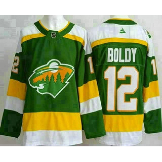 Men's Minnesota Wild #12 Matthew Boldy Green Alternate Authentic Jersey