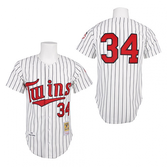 Men's Mitchell and Ness 1991 Minnesota Twins #34 Kirby Puckett Replica White Throwback MLB Jersey