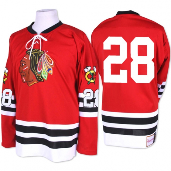 Men's Mitchell and Ness Chicago Blackhawks #28 Steve Larmer Authentic Red 1960-61 Throwback NHL Jersey
