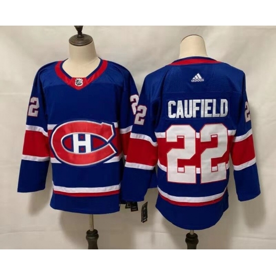 >Men's Montreal Canadiens #22 Cole Caufield Blue 2020-21 Reverse Retro Alternate Hockey Jersey