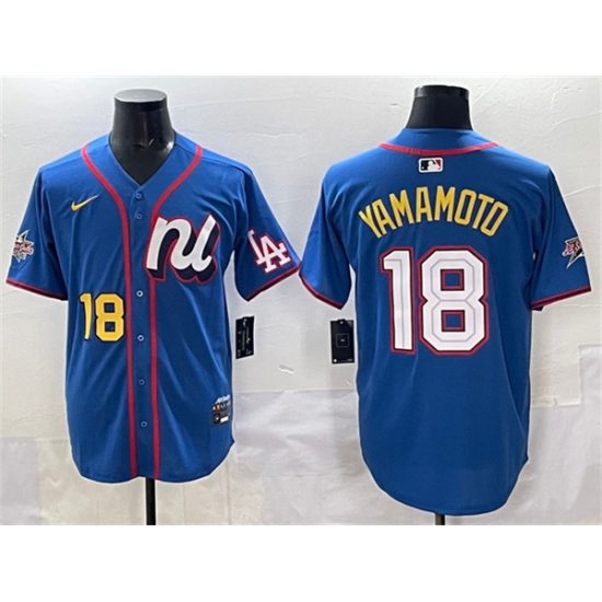 Men's National League #18 Yoshinobu Yamamoto Blue 2025 All-Star Edition Limited Stitched Baseball Jersey