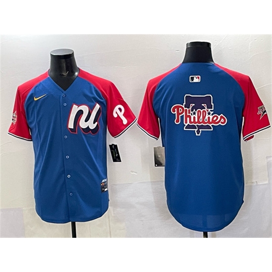 Men's National League Philadelphia Phillies Team Big Logo Blue Red Alternate 2025 All-Star Edition Limited Stitched Baseball Jersey