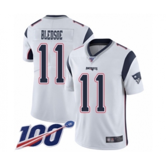 Men's New England Patriots #11 Drew Bledsoe White Vapor Untouchable Limited Player 100th Season Football Jersey