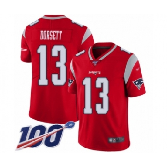 >Men's New England Patriots #13 Phillip Dorsett Limited Red Inverted Legend 100th Season Football Jersey