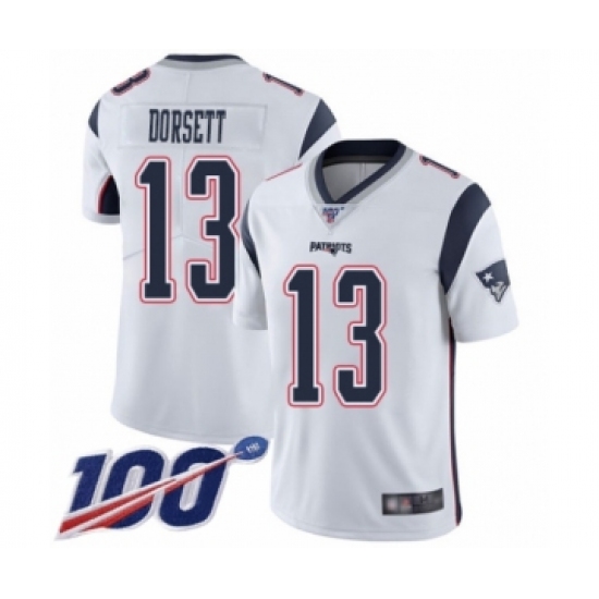>Men's New England Patriots #13 Phillip Dorsett White Vapor Untouchable Limited Player 100th Season Football Jersey