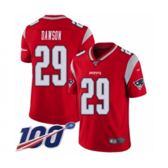 >Men's New England Patriots #29 Duke Dawson Limited Red Inverted Legend 100th Season Football Jersey