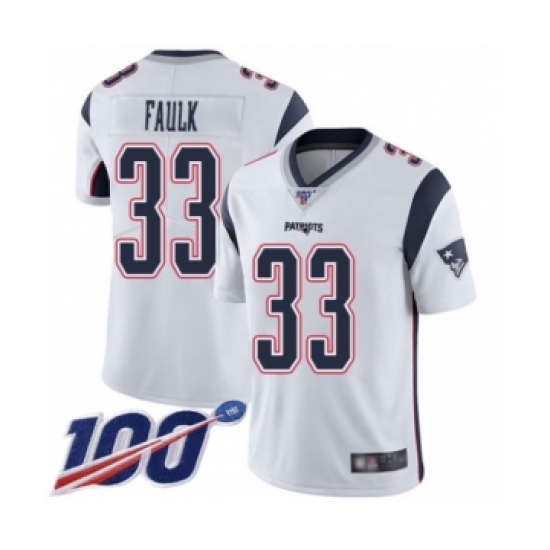 Men's New England Patriots #33 Kevin Faulk White Vapor Untouchable Limited Player 100th Season Football Jersey