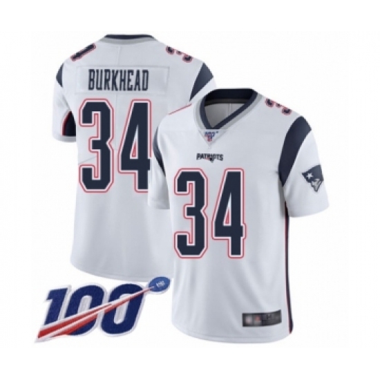 Men's New England Patriots #34 Rex Burkhead White Vapor Untouchable Limited Player 100th Season Football Jersey