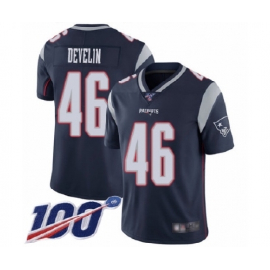 Men's New England Patriots #46 James Develin Navy Blue Team Color Vapor Untouchable Limited Player 100th Season Football Jersey