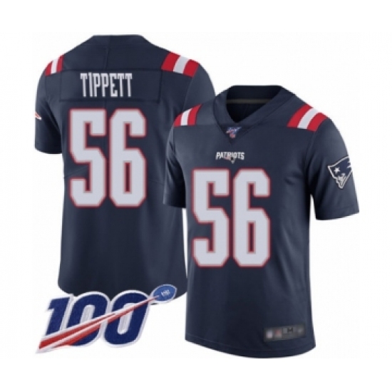 Men's New England Patriots #56 Andre Tippett Limited Navy Blue Rush Vapor Untouchable 100th Season Football Jersey