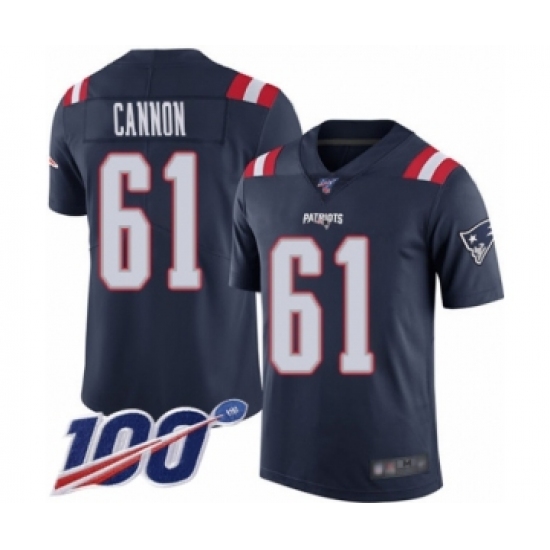 >Men's New England Patriots #61 Marcus Cannon Limited Navy Blue Rush Vapor Untouchable 100th Season Football Jersey