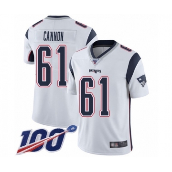 >Men's New England Patriots #61 Marcus Cannon White Vapor Untouchable Limited Player 100th Season Football Jersey