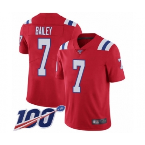 >Men's New England Patriots #7 Jake Bailey Red Alternate Vapor Untouchable Limited Player 100th Season Football Jersey