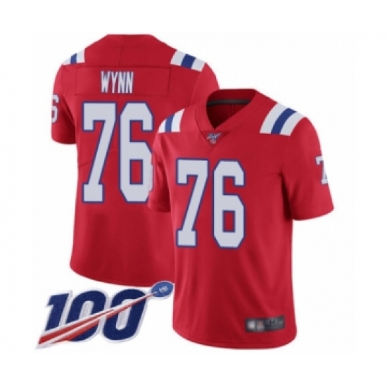 Men's New England Patriots #76 Isaiah Wynn Red Alternate Vapor Untouchable Limited Player 100th Season Football Jersey
